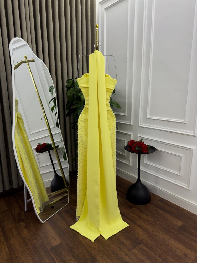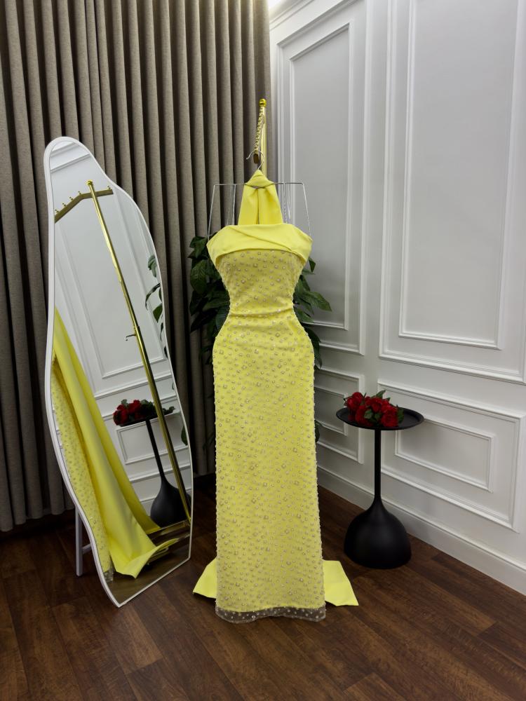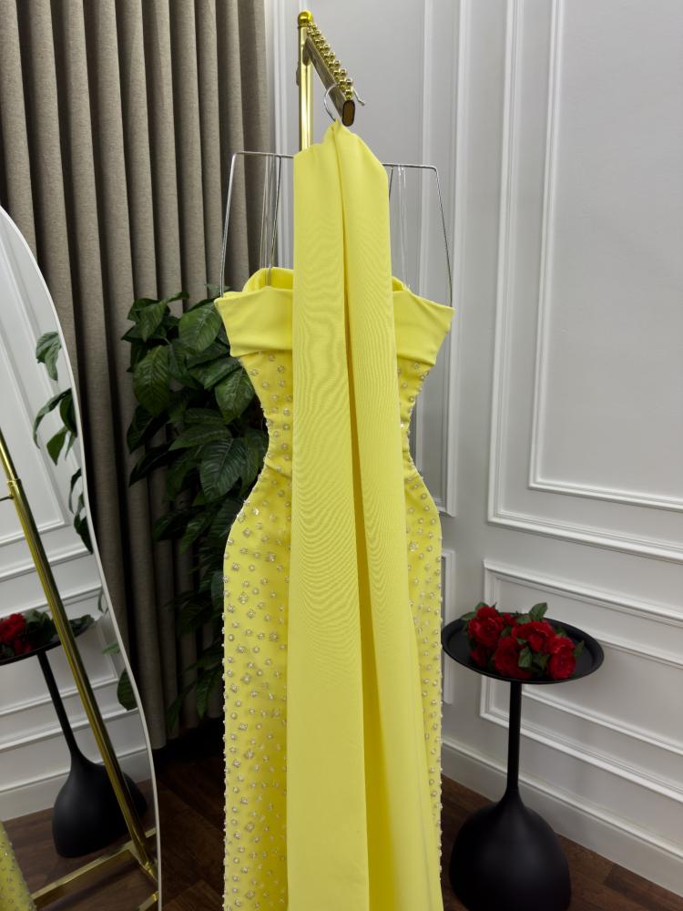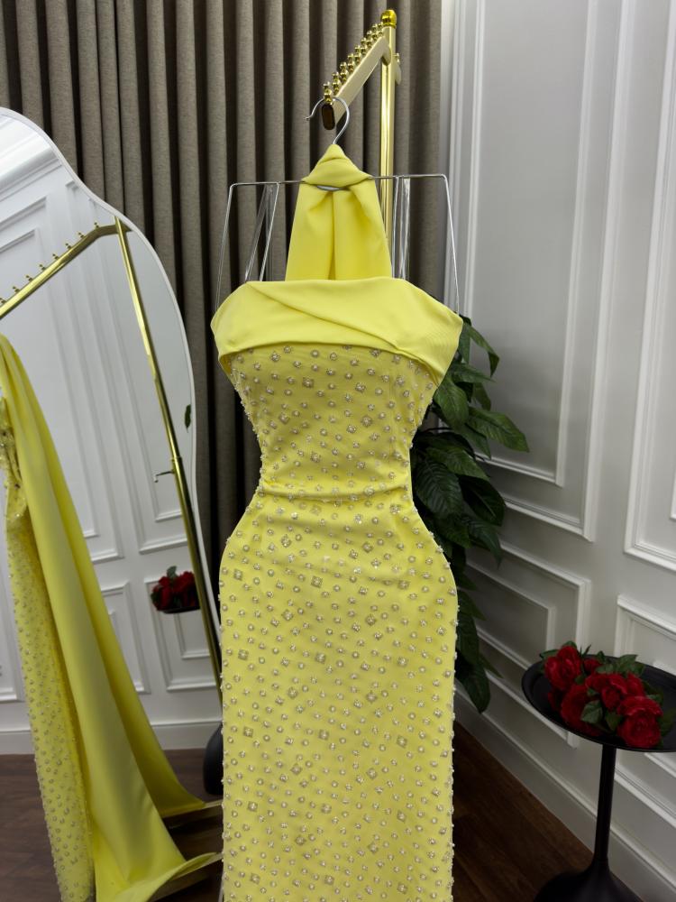اطلبي الآن فستان مناسبات انيق بلون صيفي ملفت بأضافة الترتر والخرز