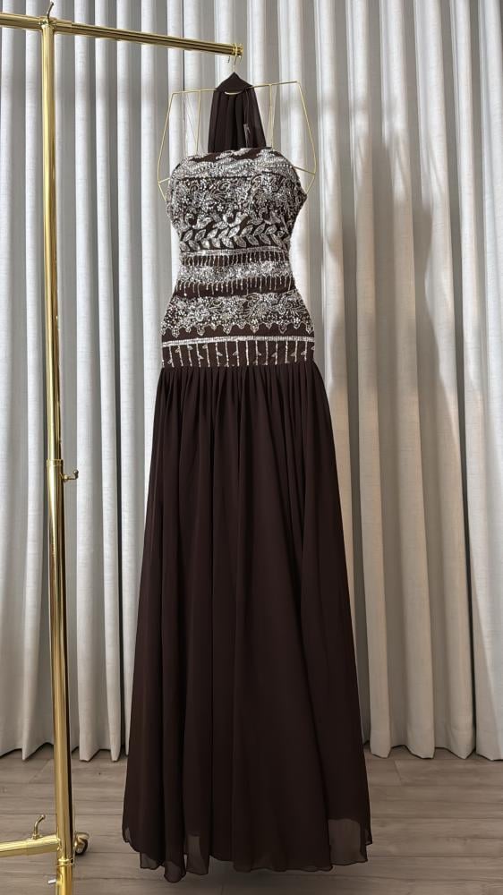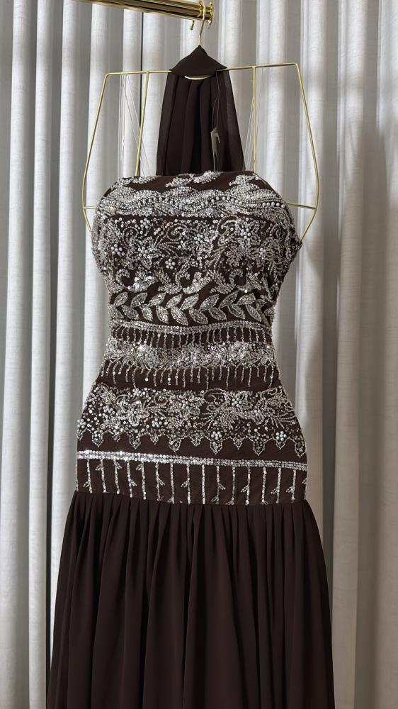 اطلبي الآن فستان سهره بلون وتصميم جذاب وملفت مع شال