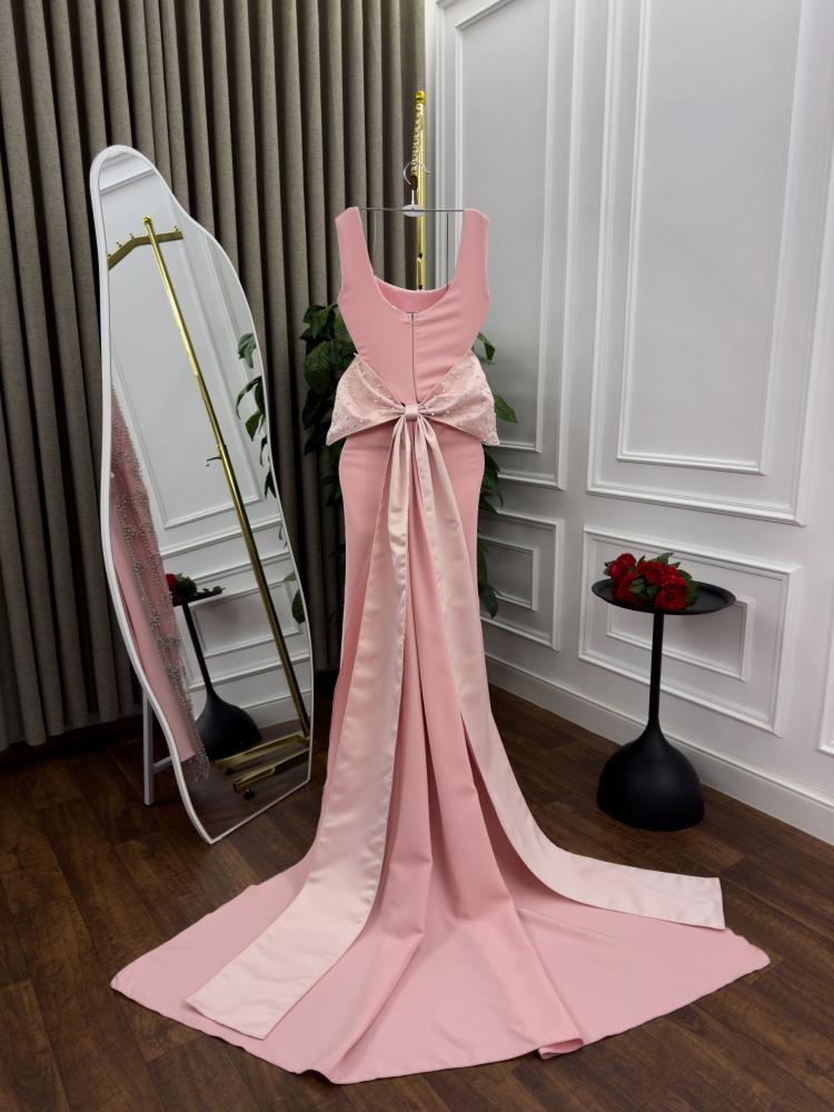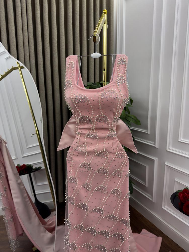 اطلبي الآن فستان مناسبات انيق بأضافة الؤلؤ والفصوص والفونكة من الخلف