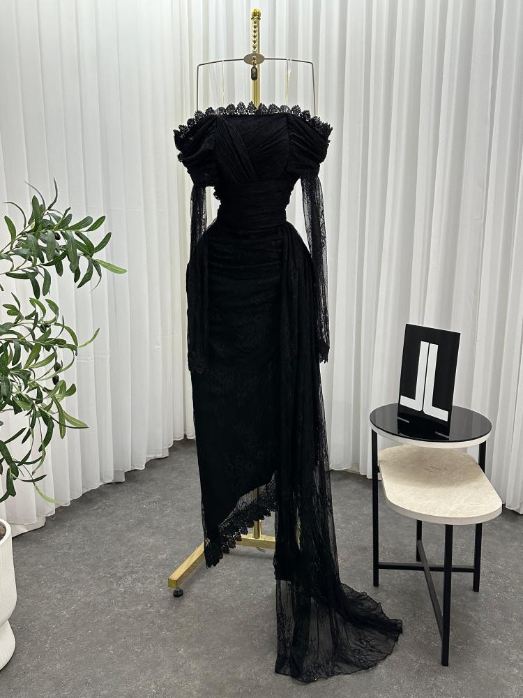 اطلبي الآن فستان سهره وحفلات ناعم بتصميم الاكمام والاوف شوفدر الانيق دانتيل ببطانة باربي ناعمه