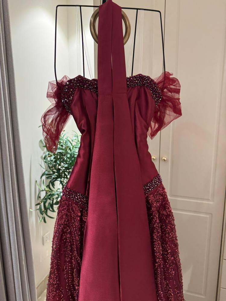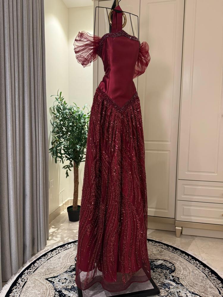 اطلبي الآن فستان سهره فخم ميكادو مطرز خرز شك يدوي