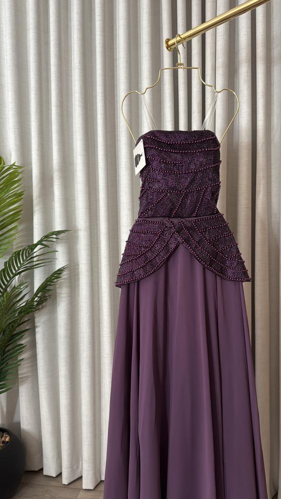 اطلبي الآن فستان سهره بخامة الشيفون مطرز بخرز وفصوص