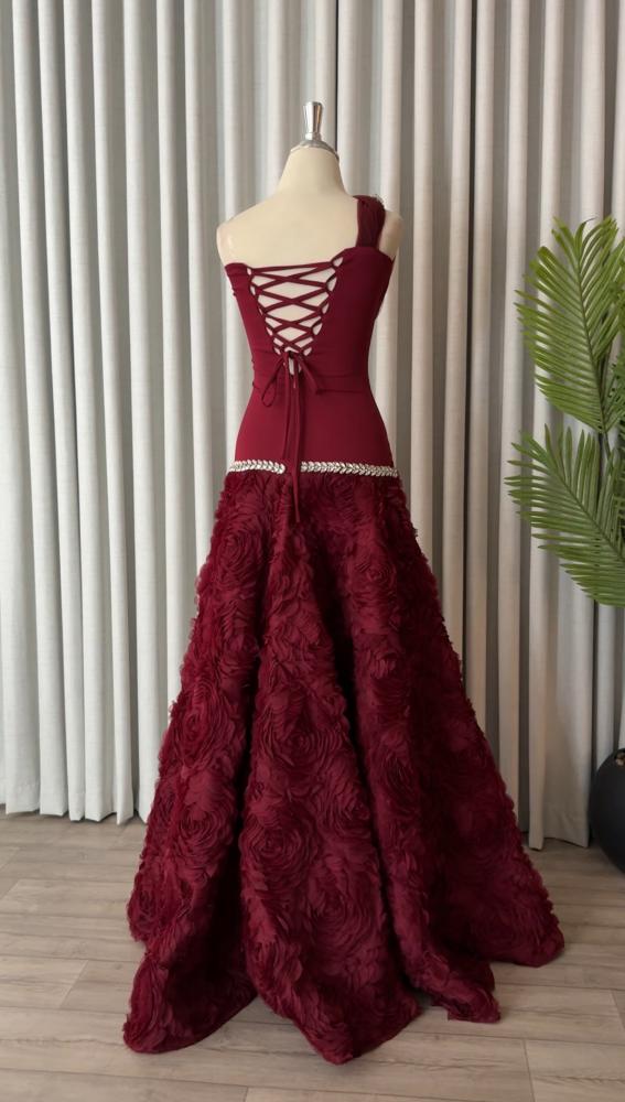 اطلبي الآن فستان سهره كلوش بتصميم باربي ساحر، ينطق بأنوثة ملكية فاخرة. يأتي بلون البرغندي العميق ليعكس فخامة لا تُضاهى، ومصنوع من طبقات التول الفاخر على شكل تريبل كلوش تنسدل بانسيابية كأمواج ناعمة من الورود. يزدان بتطريز يدوي دقيق مرصع بأحجار سواروفسكي الأصلية