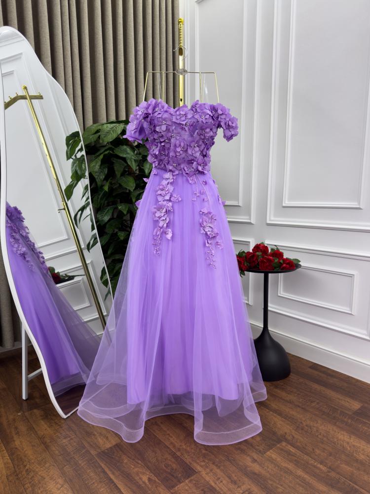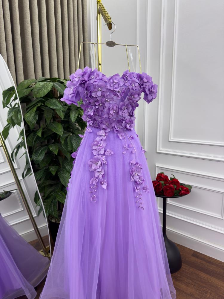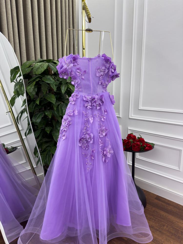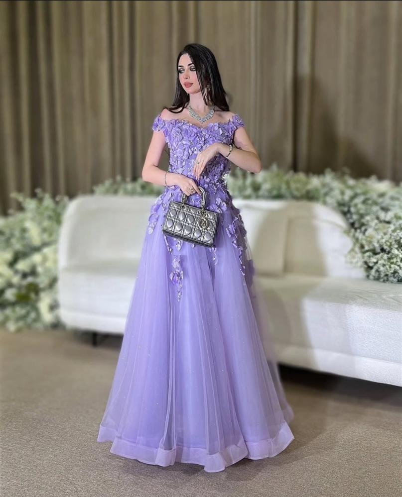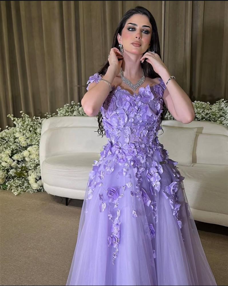 اطلبي الآن فستان سهره بتل بخرز وورد بارز